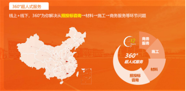 第二:360°超人式服务。集团已经建立起线上+线下立体式服务方式,360°全方位为你解决从招投标咨询→材料→施工→商务服务等环节问题,同时集团还拥有健全的投标资质服务中心。