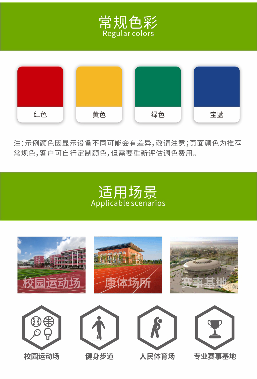 透气型塑胶跑道是由橡胶黑颗粒为底层,聚氨颗粒与塑胶浆为面层铺设组成的高性能塑胶结构。具有使用寿命长、综合性能适中、施工快捷等优点,它经济实惠、价格低廉,而且不会有鼓泡现象发生,同时也减少了地基经费的投入。